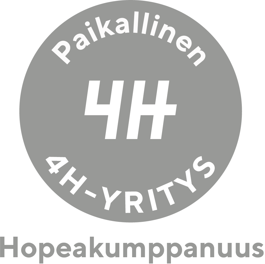 Paikallinen hopeakumppanuus | minimi 850 € | Hopeakumppani saa 4H-yrittäjyyttä tukemassa -julkaisun 4H-yhdistyksen sosiaalisen median kanavissa. Hopeakumppanilla on mahdollisuus saada logonsa ja nimensä esille yhdistyksen verkkosivuille. Hopeakumppanille tarjotaan mahdollisuutta osallistua kumppanina yhteen 4H-yhdistyksen järjestämään tapahtumaan. |