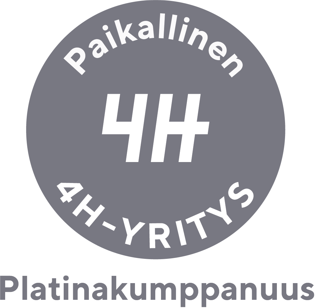 Paikallinen platinakumppanuus | minimi 2 000 € | Platinakumppani saa halutessaan sisältönäkyvyyttä 4H-yhdistyksen sosiaalisen median kanavissa esim. ”Kuukauden kumppani” -esittelyn. Platinakumppanilla on mahdollisuus saada logonsa ja nimensä sekä lyhyen esittelytekstin yhteistyöstä esille yhdistyksen verkkosivuille ja näkyä yhdistyksen tekemässä 4H-yrittäjyyteen liittyvässä viestinnässä. Platinakumppanille tarjotaan mahdollisuutta osallistua kumppanina 4H-yhdistyksen järjestämiin tapahtumiin. |